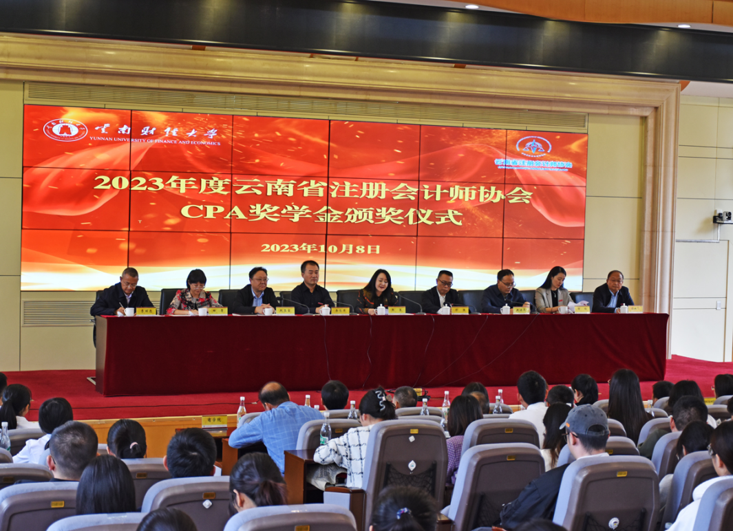 10月8日,2023年度云南省注册会计师协会CPA奖学金颁奖仪式在我校凌云楼北附201国际学术报告厅举行。云南省财政厅总会计师、二级巡视员张吕,英国正版365官方网站党委委员、副校长余怒涛,云南省注册会计师协会负责人出席会议,云南省财政厅会计处,英国正版365官方网站校友工作办公室、教育发展基金会,会计学院及各参评学院的负责人和相关同志及获得2023年度CPA奖学金的全体师生参加。颁奖仪式由英国正版365官方网站副校长彭强主持。
