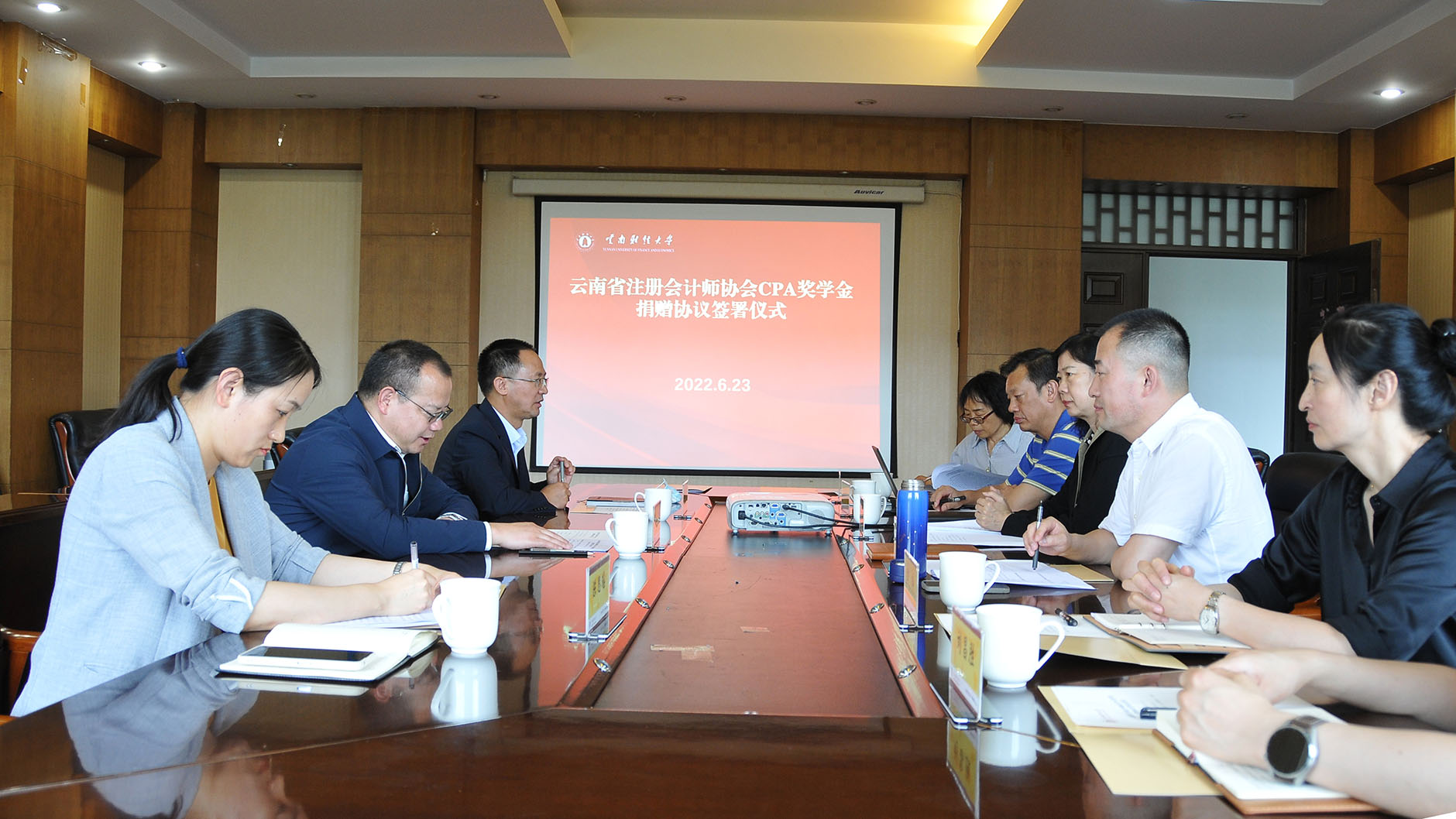 6月23日,云南省注册会计师协会CPA奖学金捐赠协议签署仪式在学校龙泉路校区举行。云南省财政厅副厅长王武,云南省财政厅票据管理中心主任、云南省注册会计师协会秘书长金德华,学校党委委员、副校长王晓萍,英国正版365官方网站教育发展基金会理事长葛茂光出席仪式,仪式由学校党委委员、会计学院院长余怒涛主持。