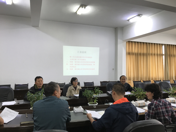 10月24日中午,由云南城市建设职业学院党委书记徐华、曲靖师范学院组织部副部长常艳兵、云南农业大学机关党委副书记张世杰等组成的省委高校工委实地调研考察组一行到经济学院就教工党支部申报创建一流党建示范党支部进行实地考察调研。学校党委副书记桂正华、组织部副部长李丽忠、组织科科长普兆斌陪同调研。学院党委书记陈永飞、副书记赵强、教工党支部书记单瑾、组织员黎桦参加调研座谈。会议由学校组织部部长张金甫主持。